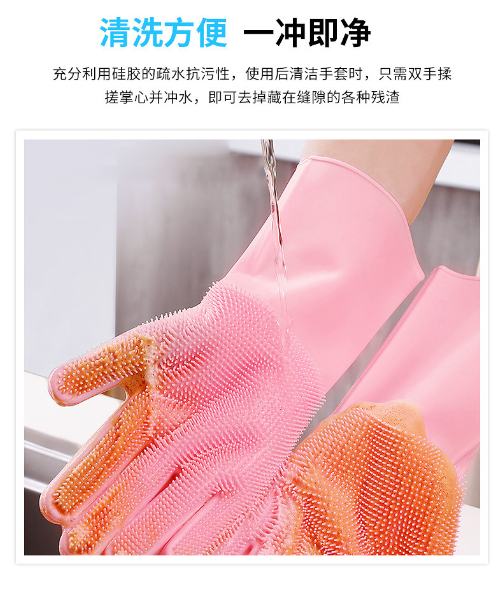 3.手套易清洗徹底不滋生細(xì)菌,這一點(diǎn)是很多清潔用品都做不到的,油脂、醬油、醋、污垢等等都無法有力附著在硅膠表面,而其他比如鋼絲球、海綿塊、洗碗布等等材質(zhì),都做不到,使用硅膠洗碗手套實(shí)在是讓人放心。